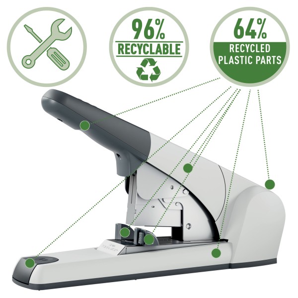 - ergonomiczne ramię zapewnia zszywanie dużego pliku kartek bez wysiłku