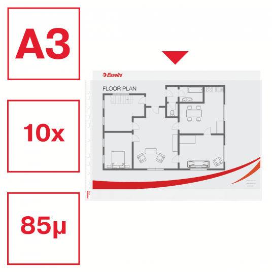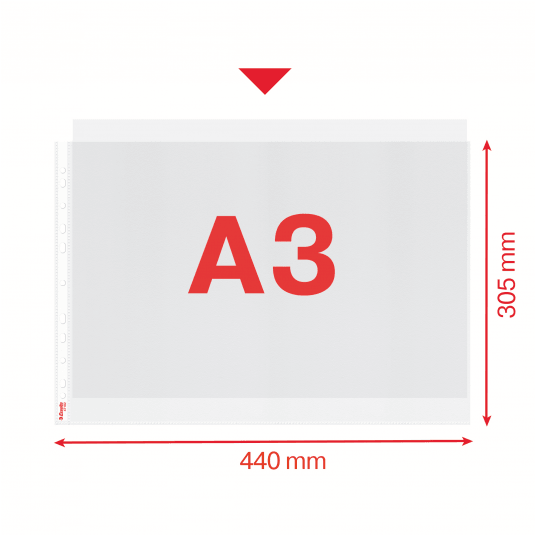 - Odpowiednie do przechowywania dokumentów w formacie A3 we wszystkich rodzajach segregatorów.