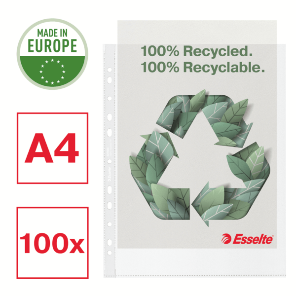 Koszulki A4 groszkowe ESSELTE RECYCLED PREMIUM Maxi 100 mic., 100 sztuk