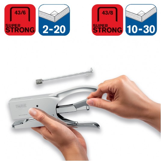 Oparty na konstrukcji K1 - najlepiej sprzedającego się zszywacza nożycowego na świecie. Bez regulowanego kowadełka, ale dostosowany do zszywek Rapid 43. Idealne narzędzie do pracy z tkaninami.