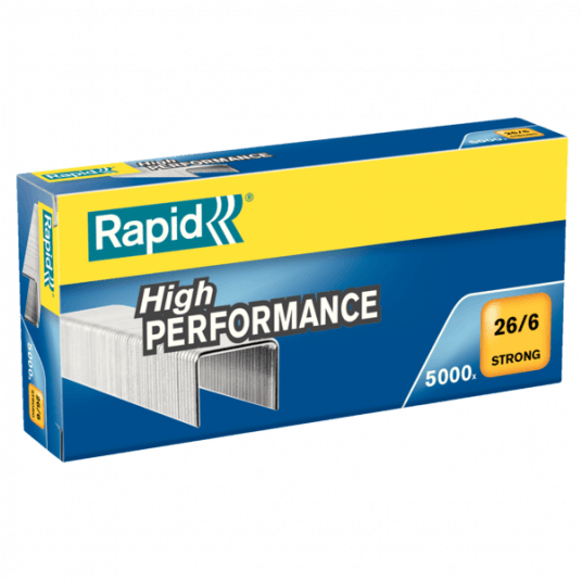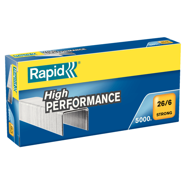 Ostre końce gwarantują najlepsze rezultaty. Pokryte powłoką galwaniczną zapobiegającą korozji. Idealne zszywki do produktów zszywających płasko. Opakowanie zawierające 5000 sztuk zszywek Strong 26/6.