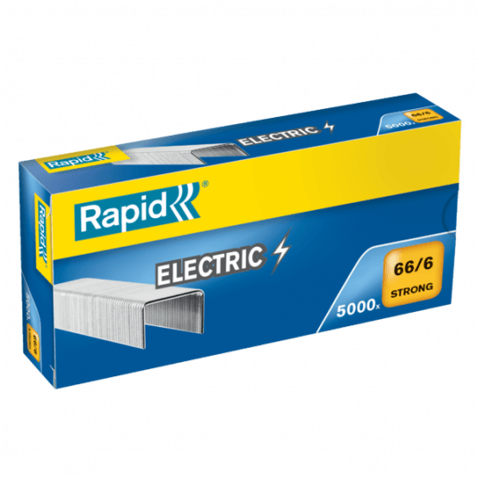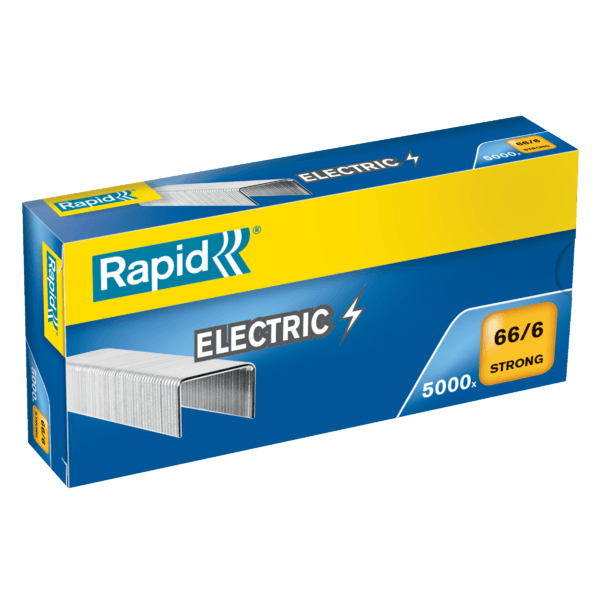 Ostre końce gwarantują najlepsze rezultaty. Pokryte powłoką galwaniczną zapobiegającą korozji. Przeznaczone do zszywaczy elektrycznych. Opakowanie zawierające 5000 sztuk zszywek Strong 66/6.
