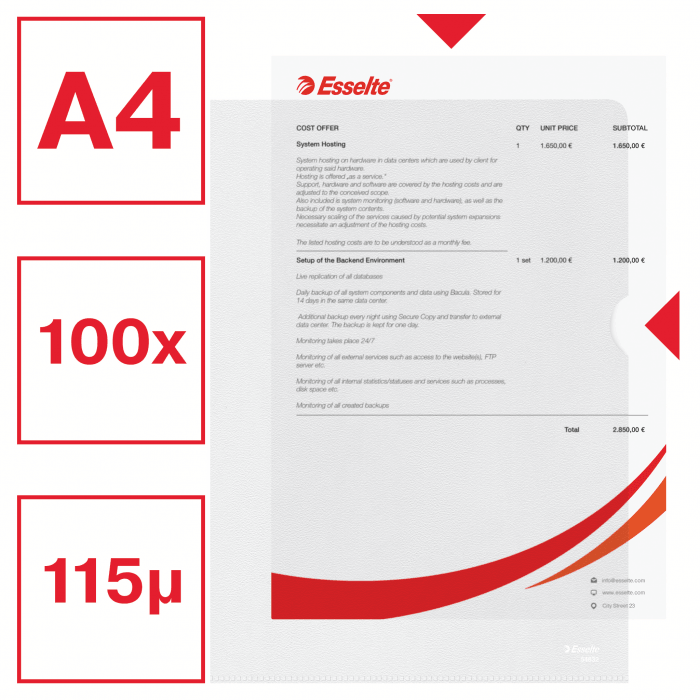 Ofertówki A4 groszkowe ESSELTE 30% PP z recyklingu, 115 mic., 100 sztuk