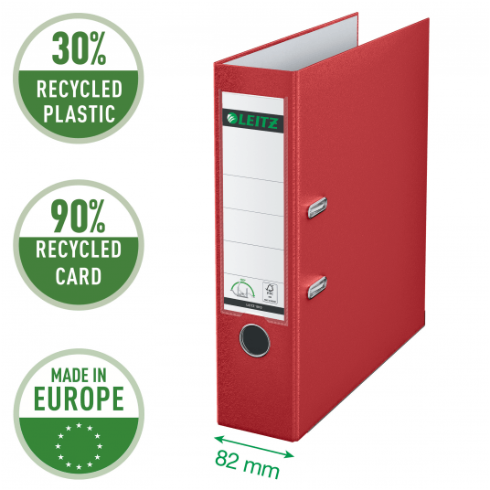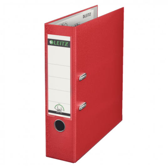 Segregator Leitz A4 z mech. 180°, szer. 80 mm, 30% PP z recyklingu, czerwony