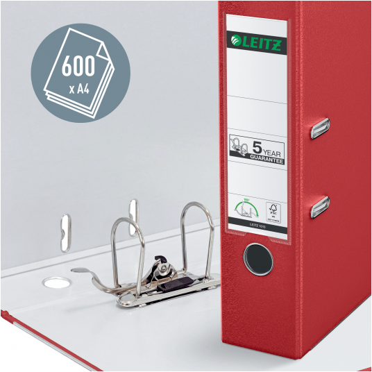 Segregator Leitz A4 z mech. 180°, szer. 50 mm, 30% PP z recyklingu, czerwony