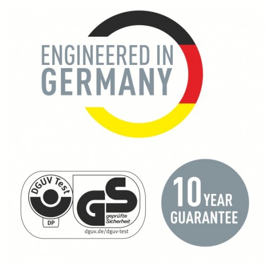 10 lat gwarancji przy użyciu zszywek Leitz, posiada certyfikat bezpieczeństwa GS.