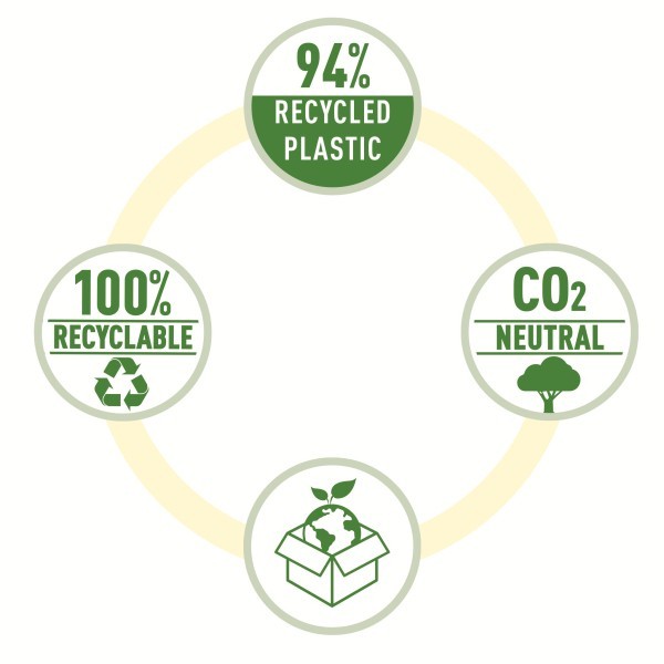 Wykonane w 94% z plastiku pochodzącego z recyklingu i neutralne dla klimatu.