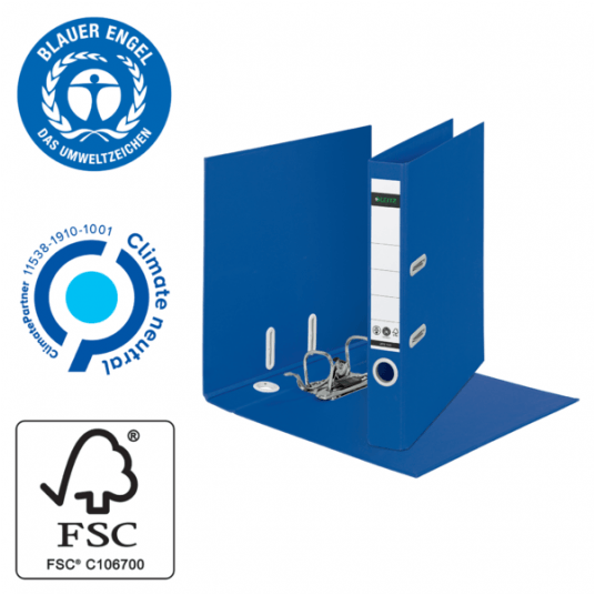 Cały segregator można zdemontować i podzielić na części z kartonu, plastiku i metalu w celu ponownego 100% przetworzenia.