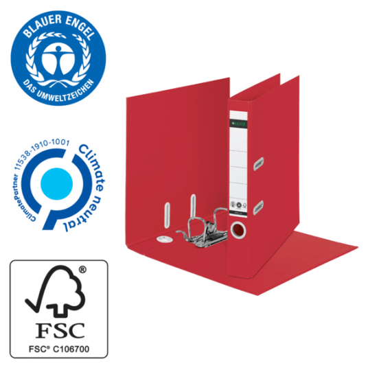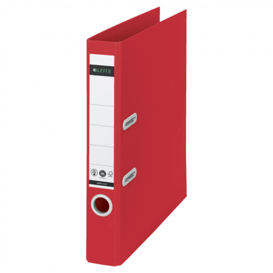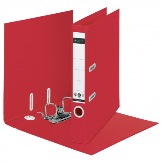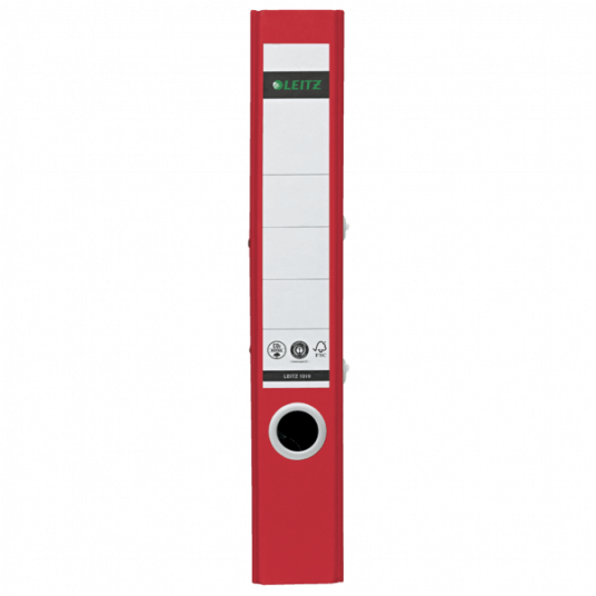 - Otwór na palec z jasnoszarego plastiku z recykligu ułatwia wyjmowanie segregatora z półki, a pierścienie rado zabezpieczają segregator, gdy jest zamknięty i ustawiony w pozycji pionowej.
