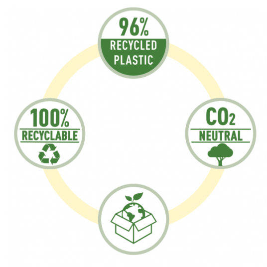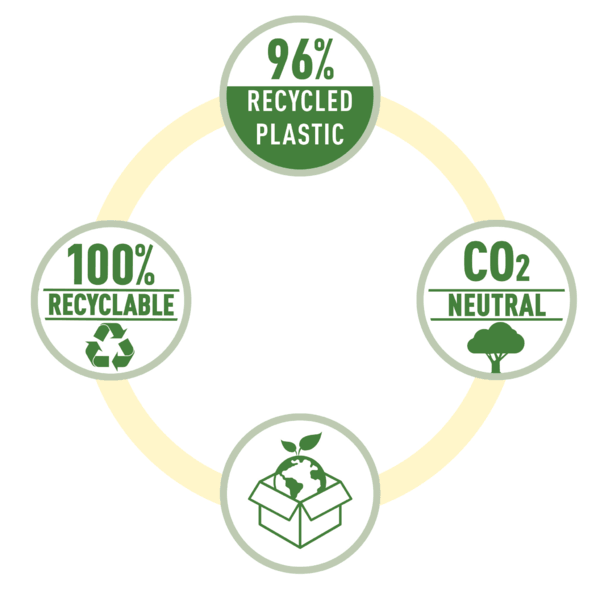 - 96% surowców wtórnych, możliwość ponownego przetworzenia.