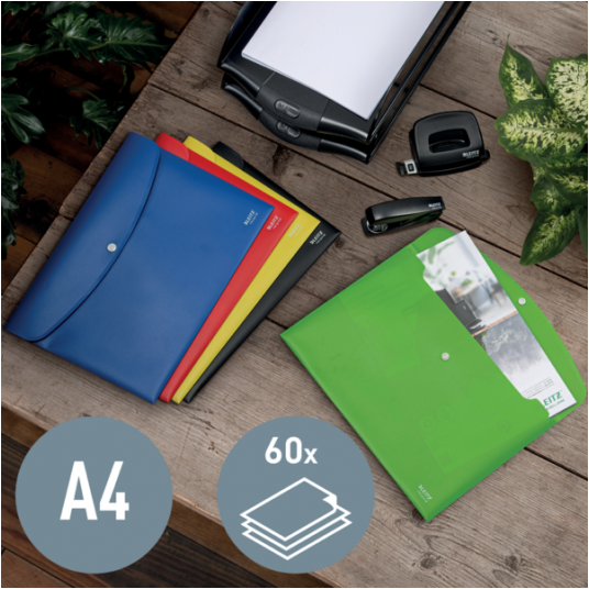 - Klapka z zamknięciem na zatrzask chroni dokumenty przed wypadaniem.