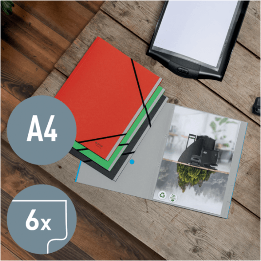 Z gumką na rogach, chroniącą dokumenty przed wypadaniem.