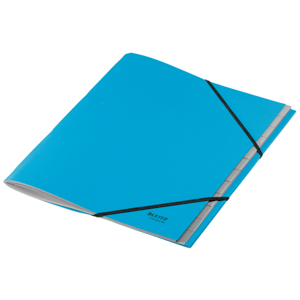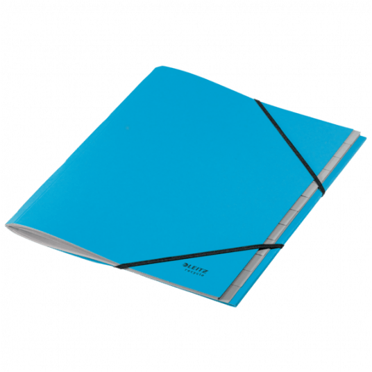 Z gumką na rogach, chroniącą dokumenty przed wypadaniem.