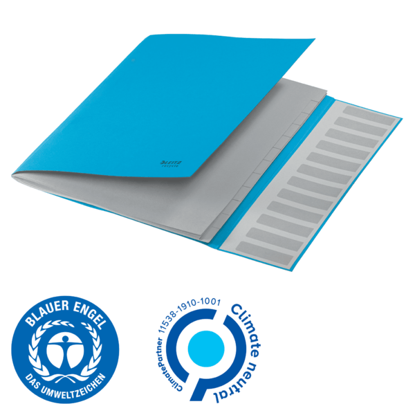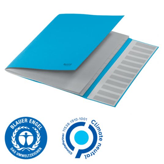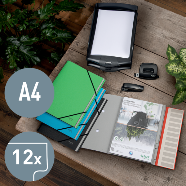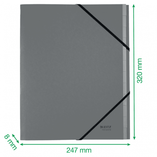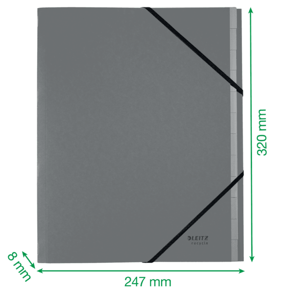 Wykonana z kartonu w 100% pochodzącego z recyklingu (pokonsumpcyjnego), neutralna dla klimatu i w 100% nadająca się do ponownego przetworzenia (po zdjęciu gumki).