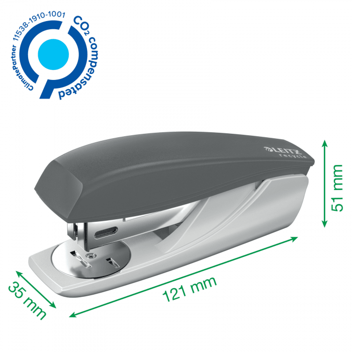 Ten niezawodny mały zszywacz idealnie pasuje do innych produktów z kolekcji Leitz Recycle - został wykonany z myślą o użytkowaniu przez wiele lat.