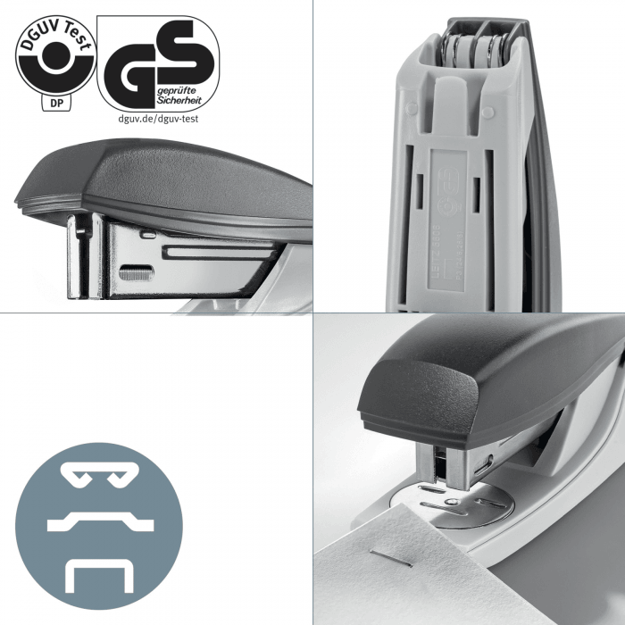 Opatentowana technologia Direct Impact oraz zszywki Leitz Power Performance P3 (24/6, 26/6) zapewniają doskonałe zszywanie za każdym razem.
