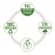 Wykonany z plastiku w 96% pochodzącego z recyklingu pokonsumenckiego, neutralny dla klimatu dzięki redukcji emisji CO2 i systemowi kompensacji.