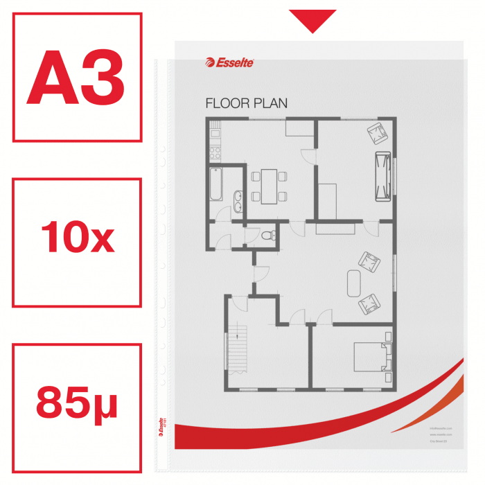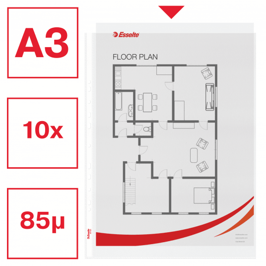 Koszulki A3 groszkowe pionowe ESSELTE 85mic., 10 sztuk