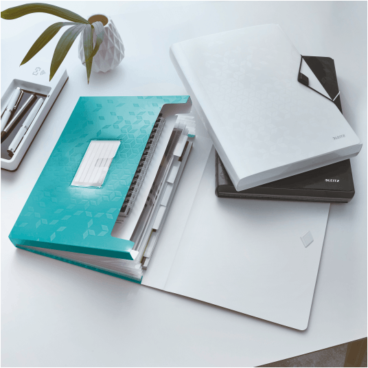 - można ją łączyć z teczkami i zeszytami WOW oraz folderami Leitz CombiFile