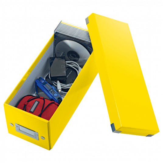 Przykuwające wzrok, stylowe pudełko na płyty CD i inne drobiazgi Szybkie i łatwe składanie/rozkładanie dzięki konstrukcji spinanej na napy (umożliwia redukcję powierzchni potrzebnej do przechowywania, kiedy pudełko nie jest używane) Dodaj energetycznych i stylowych kolorów swojemu miejscu pracy w biurze lub w domu, wybierając produkty z naszej kolekcji WOW Laminowana powierzchnia gwarantuje wspaniały wygląd, dłuższą żywotność produktu oraz łatwość usuwania zabrudzeń Możliwość łatwego opisu zawartości dzięki wysokiej jakości metalowym ramkom na etykiety i białym etykietom Mieści do 30 standardowych plastikowych opakowań, 60 cienkich opakowań lub 160 papierowych kopert Wykonane z wysokiej jakości wytrzymałego kartonu Opatentowana konstrukcja zapewnia dodatkową ochronę przed przypadkowym otwarciem pudełka z cięższą zawartością