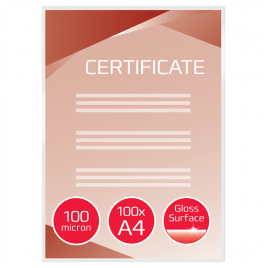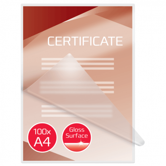 Wygodne rozwiązanie do ochrony i wzmocnienia przekazu najważniejszych stron prezentacji, listów referencyjnych, kart produktów, ogłoszeń itp. Format A4, 2 x 100 mikronów, z połyskiem. Opakowanie 100 sztuk.