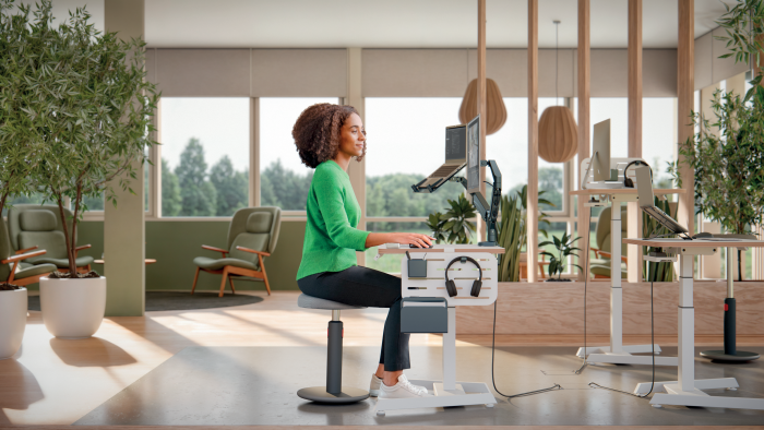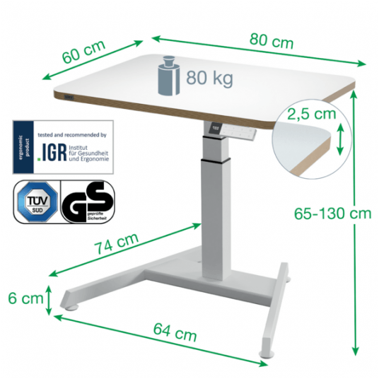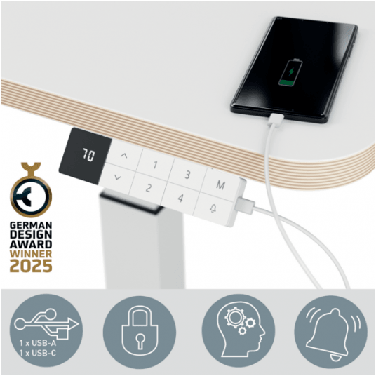 Małe biurko Leitz Ergo obsługiwane elektron. białe